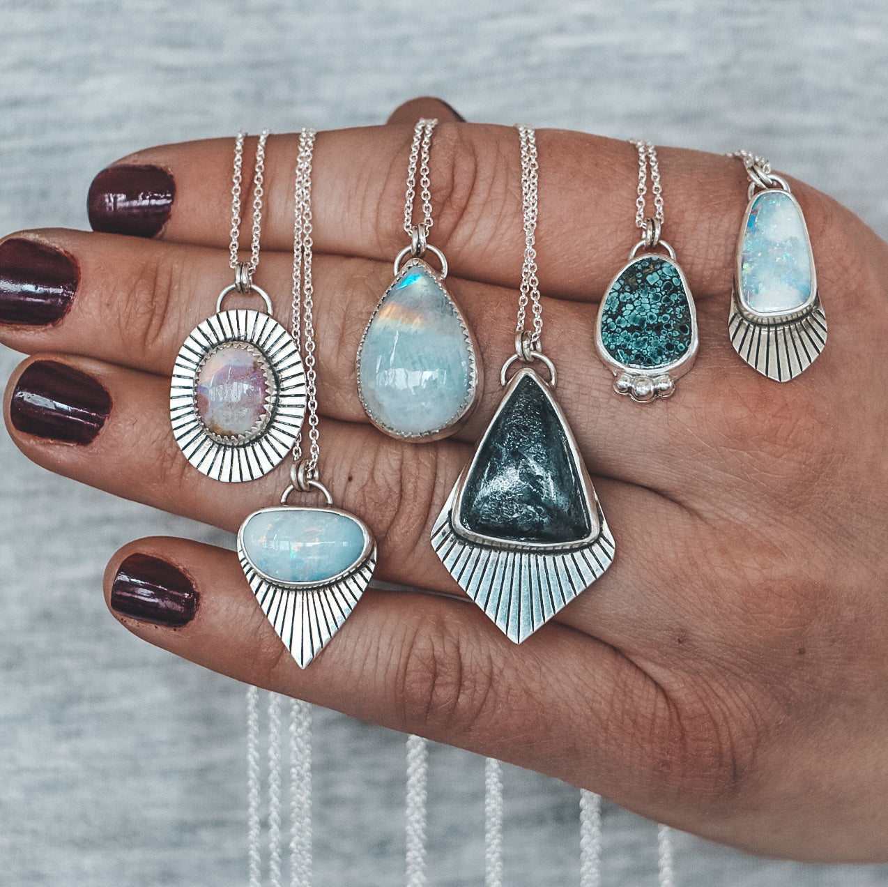 This necklace will be completed at the length of your choice on a delicate sterling silver chain. Our standard chain lengths are 16" 17" or 18," but any length is available upon request. Chains longer than 18" will be subject to a nominal upcharge.