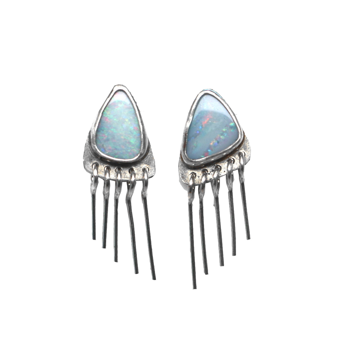 This pair of Baby Fringe Studs features Australian opals, which are blue in color with glittering rainbow opal fire.