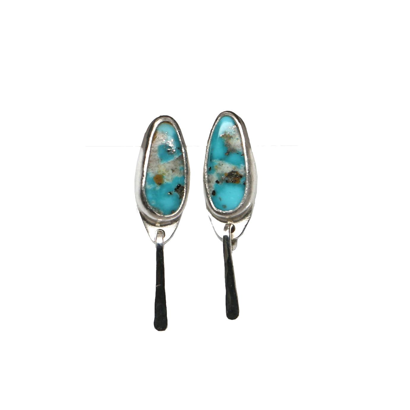 This pair of Baby Fringe Studs features Kingman Turquoise, which is bright teal in color with flecks of pyrite inclusions.
