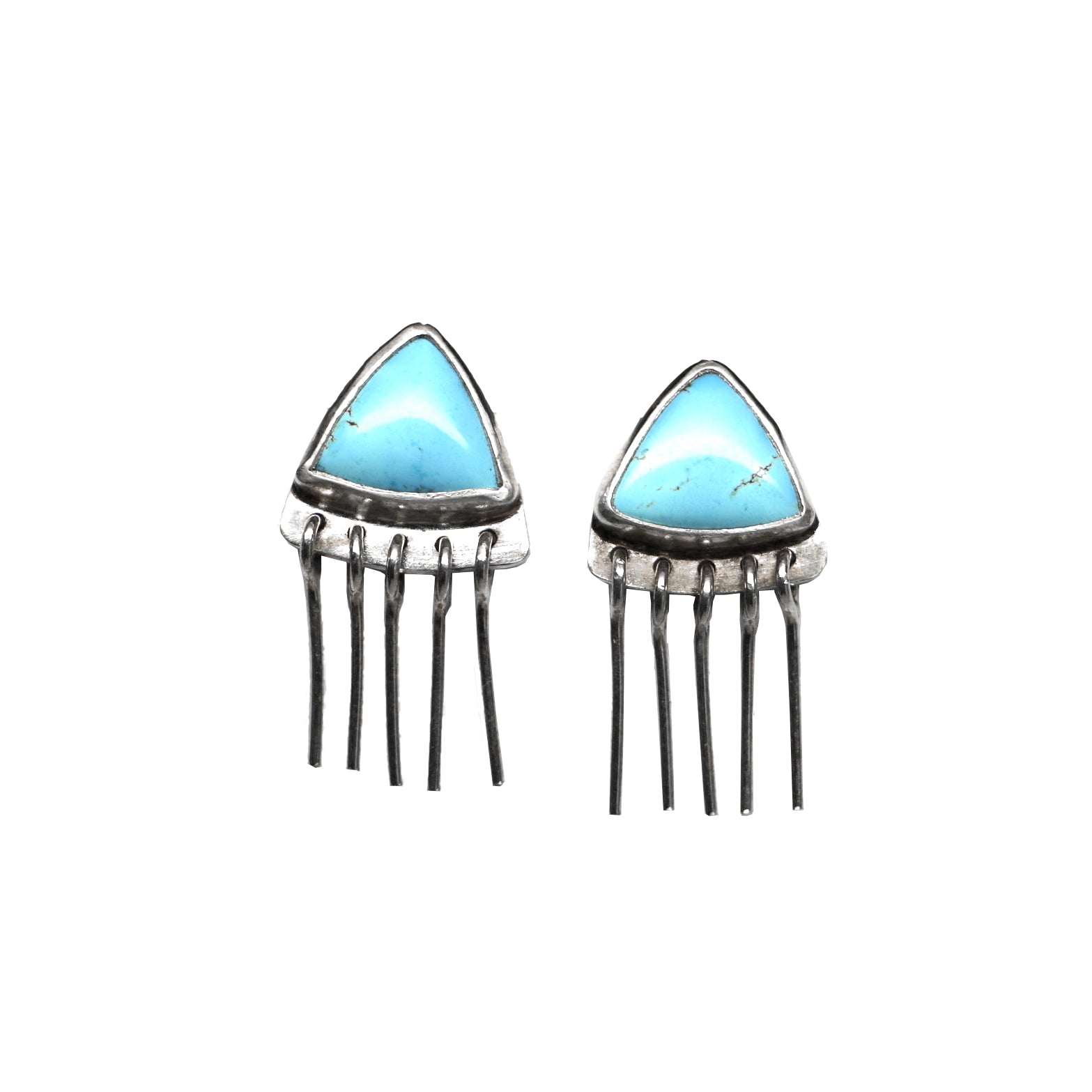 This pair of Baby Fringe Studs features Lavender Turquoise, a rare and highly coveted stone mined in Kazakhstan. The stones are light blue in color with some tinges of lavender, and some faint natural brown veining.