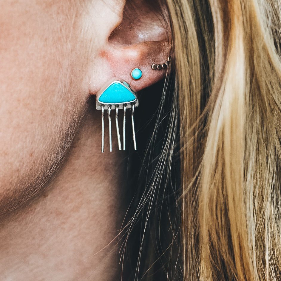 This pair of Baby Fringe Studs features Mexican Turquoise, which is bright teal in color.