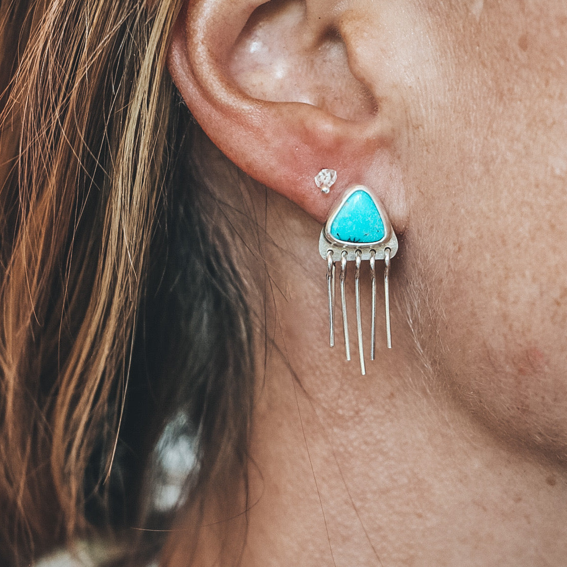 This pair of Baby Fringe Studs features Mexican Turquoise, which is bright teal in color with a few faint flecks of brown.