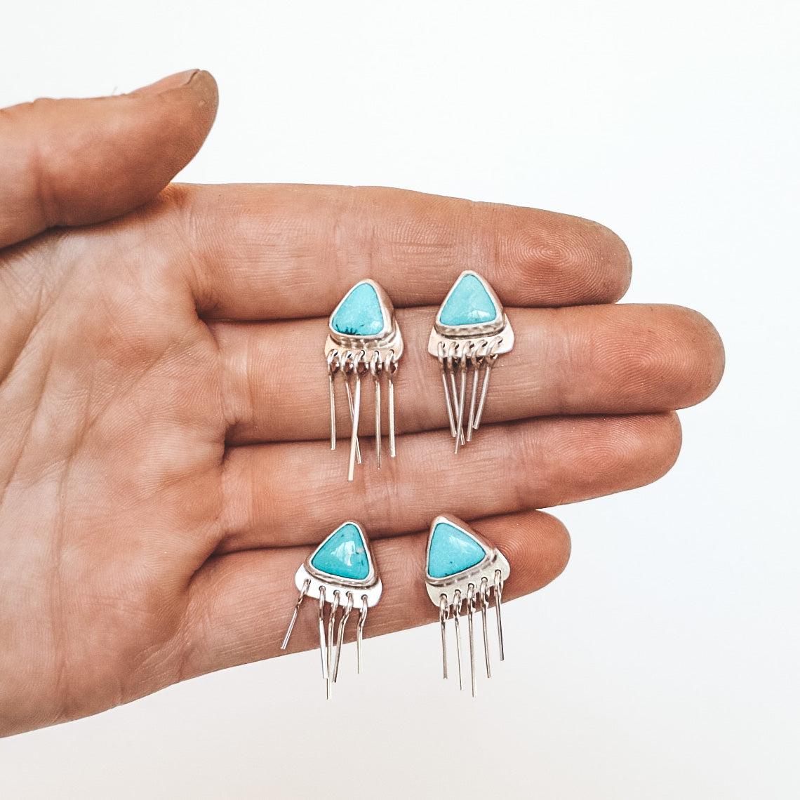 The Baby Fringe Studs are the mini version of our popular Fringies! These dainty studs have great movement, and are set in sterling silver and fine silver.