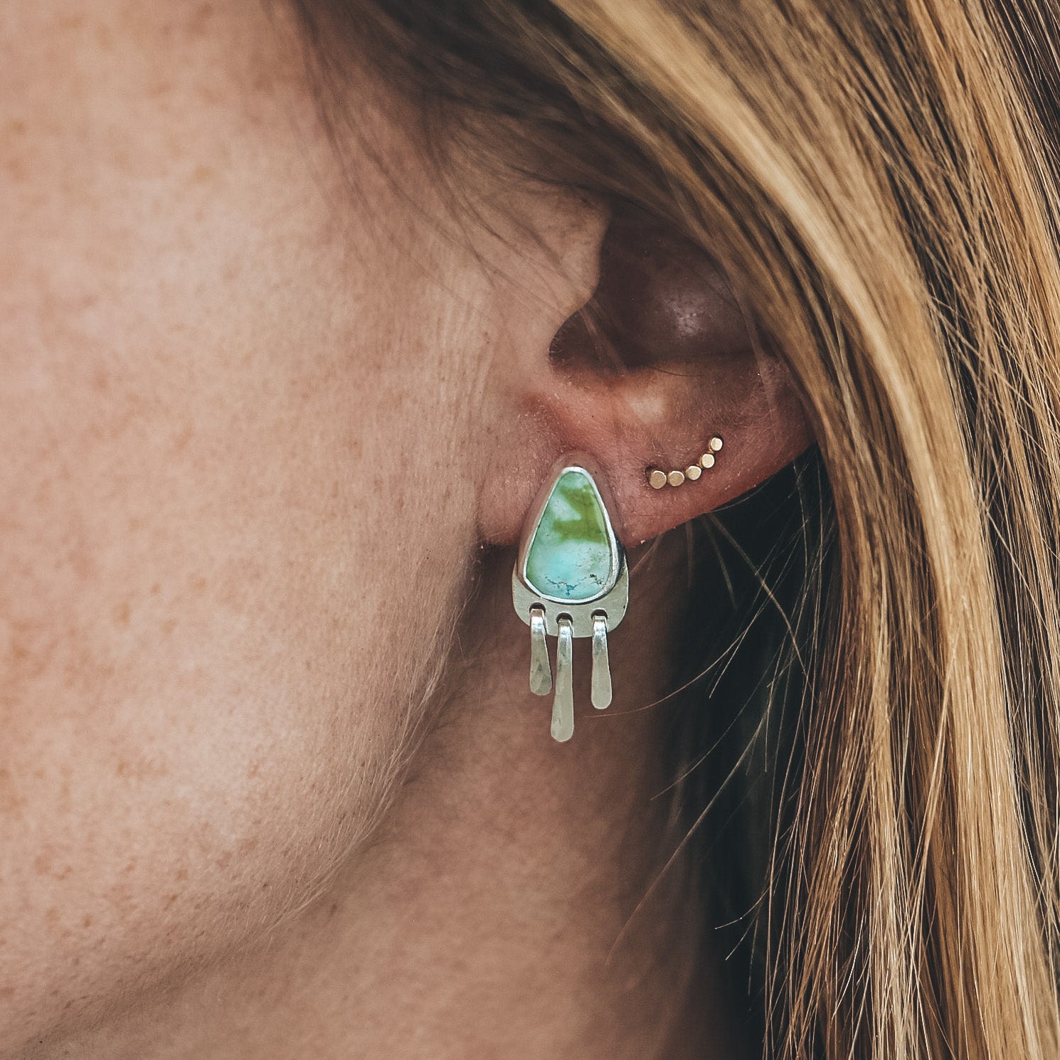 Baby Fringe Studs - Sonoran Gold Turquoise #1