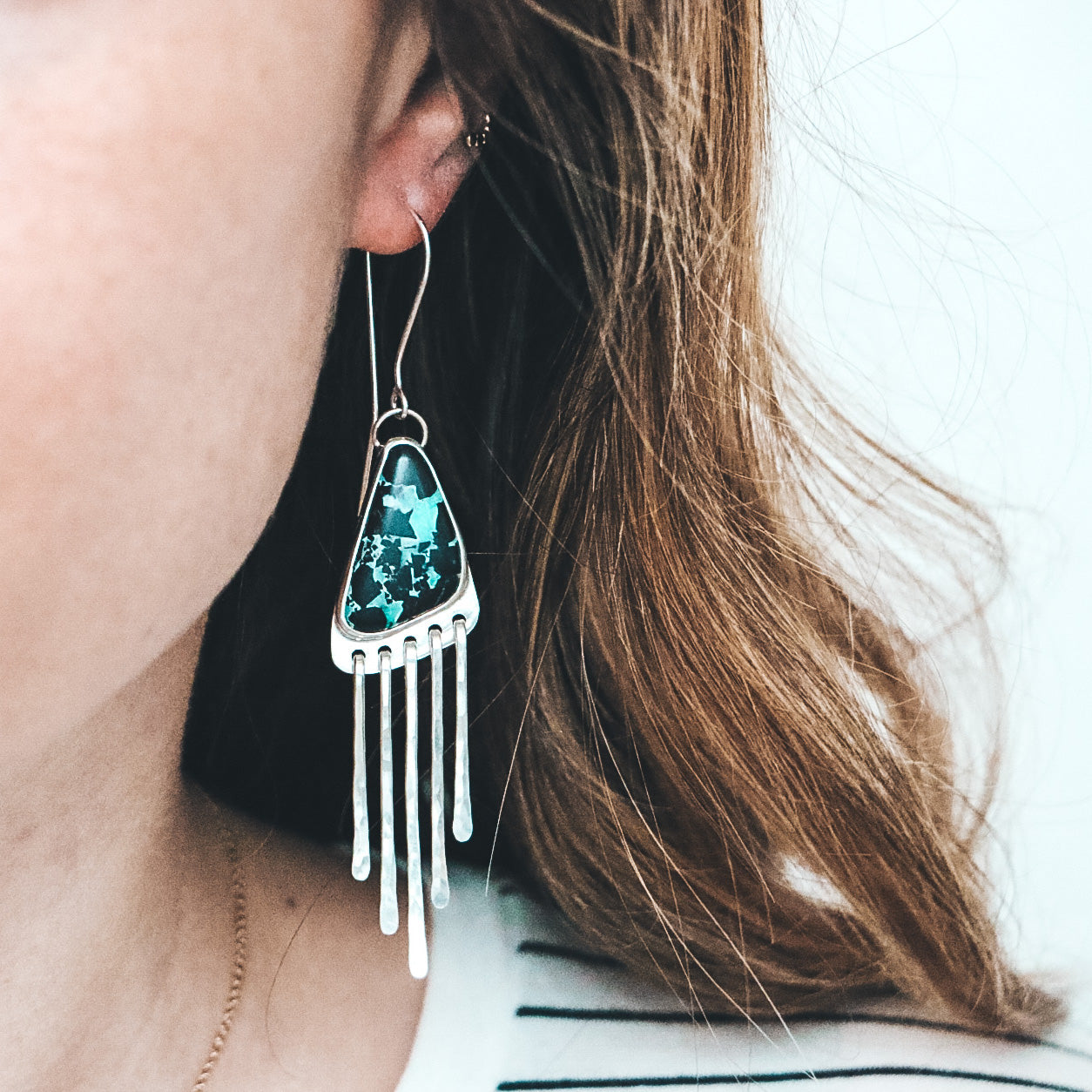 These gorgeous Black Buffalo Turquoise fringe earrings have incredible movement and are completely one of a kind!