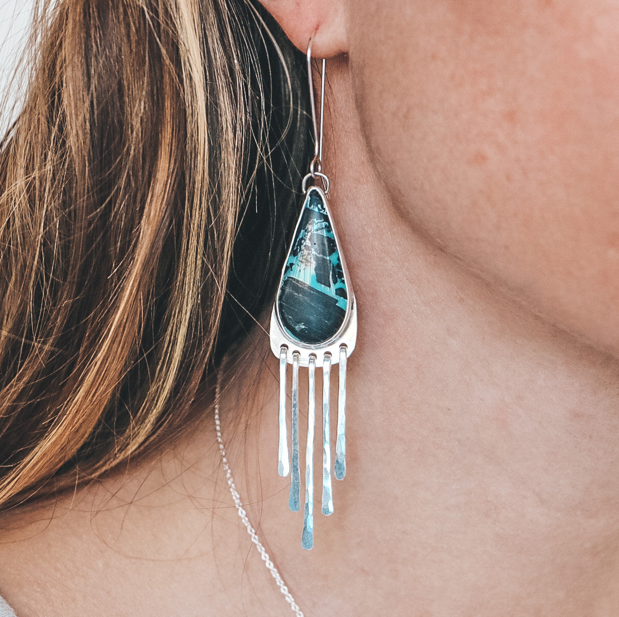 These gorgeous Black Buffalo Turquoise fringe earrings have incredible movement and are completely one of a kind!