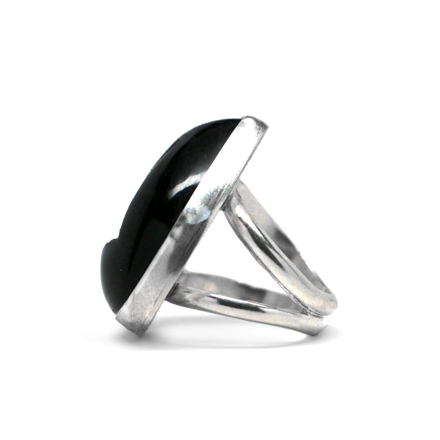 The stone measures approximately 28mm x 35mm, and is set in sterling silver and fine silver with a wide double split band. Size 8.5. This ring can not be resized.