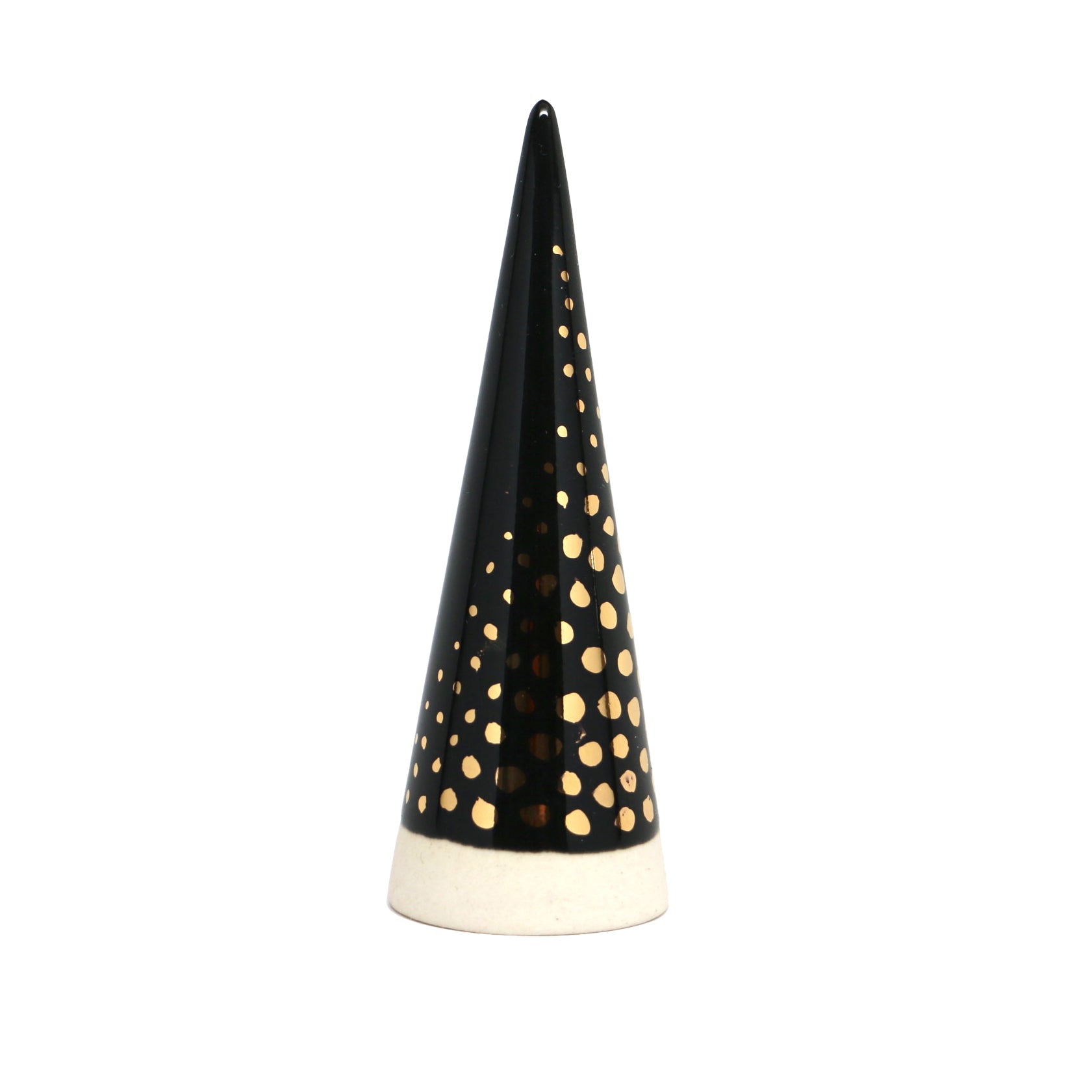 Cone measures approximately 3.75" in height. The dark line down the center in the fist photo is a reflection; this area is filled with gold dots that are not fully captured in the photo.