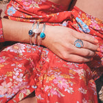 This bracelet is hand crafted by Kate in the mountains of Colorado using semi-precious stones and metals. This cuff is completely one of a kind and you will receive the piece photographed. Cuff will come in a gift box with a travel pouch, polish cloth, and care instructions.
