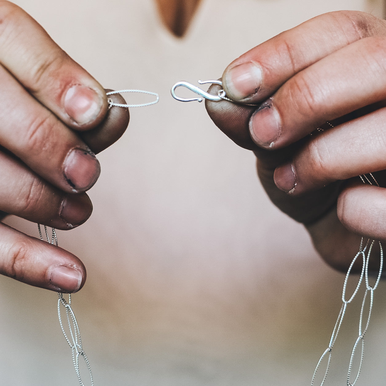This necklace has a 33" paperclip-style chain and comes with a removable clasp called an s-hook. The s-hook allows the option for the necklace to be worn doubled (see photos)