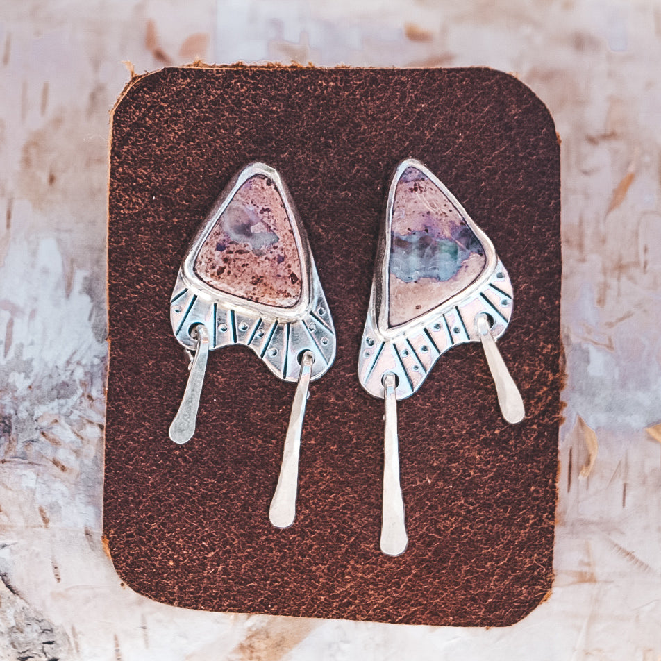 These earrings are hand crafted by Kate in Aspen, Colorado using semi-precious stones and metals. This pair of earrings are completely one of a kind and you will receive the piece photographed. Earrings come in a gift box with a travel pouch, polish cloth, and care instructions.