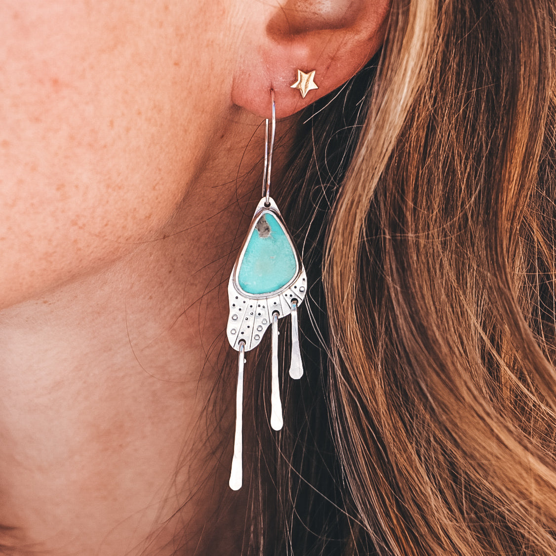 These earrings are hand crafted by Kate in Aspen, Colorado using semi-precious stones and metals. This pair of earrings are completely one of a kind and you will receive the piece photographed. Earrings come in a gift box with a travel pouch, polish cloth, and care instructions.