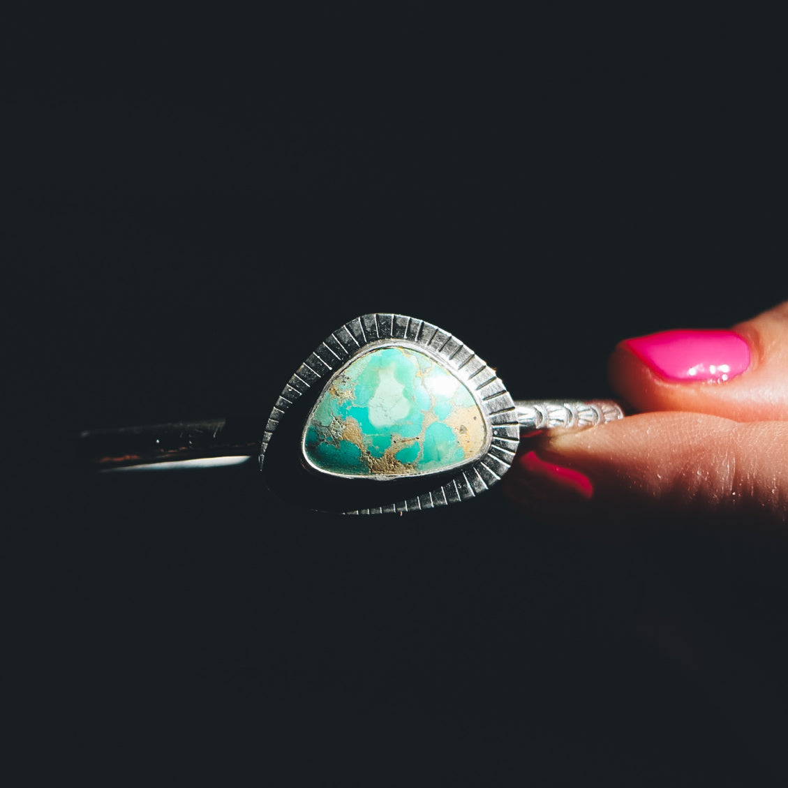This cuff features Campitos Turquoise and is completely one of a kind!