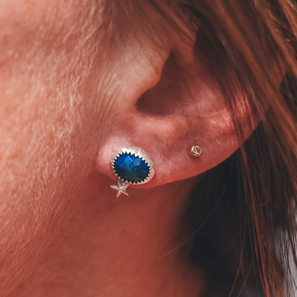 This earring is hand crafted by Kate in the mountains of Colorado. It is completely one of a kind and you will receive the piece photographed. Earring will come packaged in a gift box with a jewelry pouch, polish cloth, and care instructions.