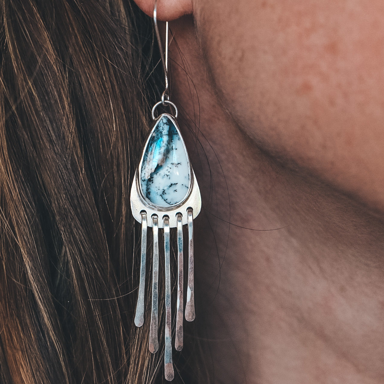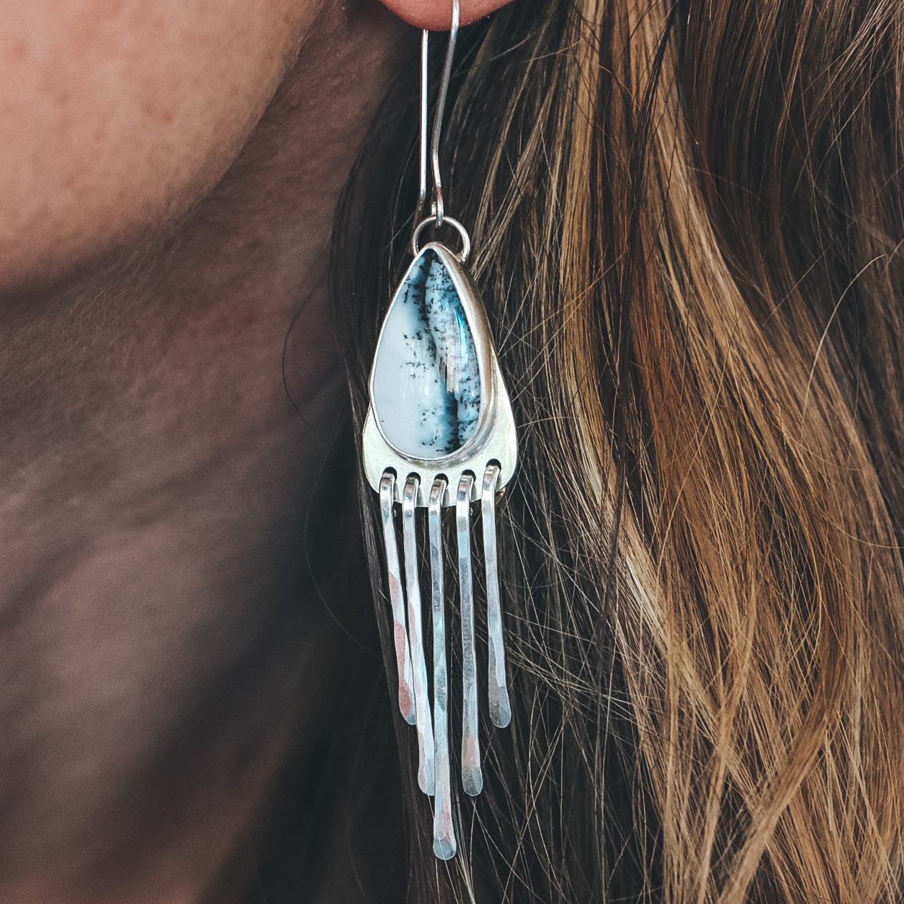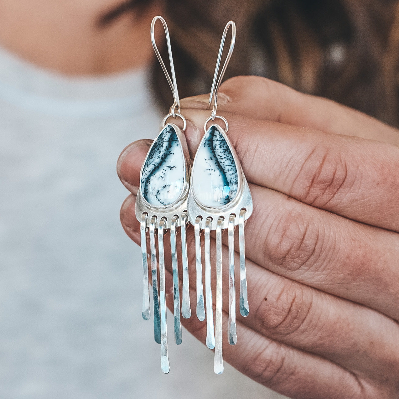 These gorgeous dendritic agate fringe earrings have incredible movement and are completely one of a kind!