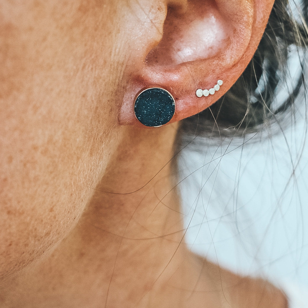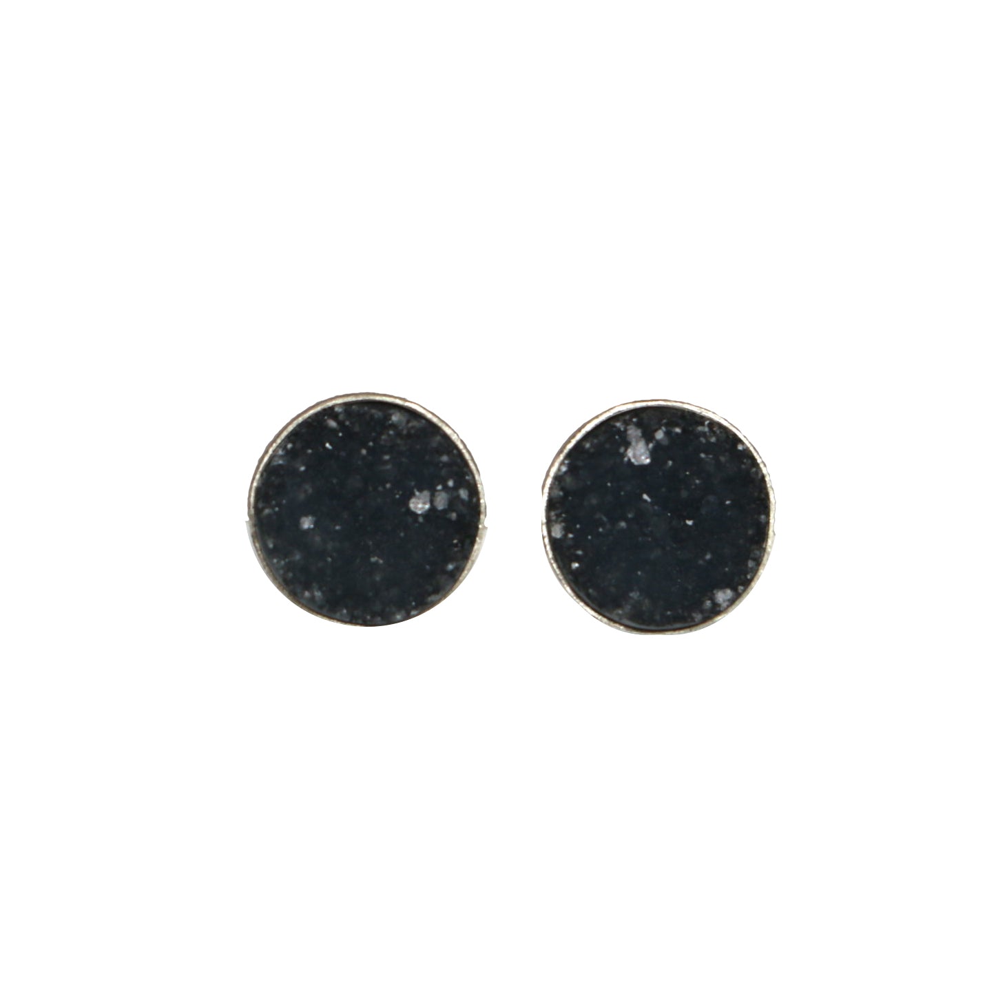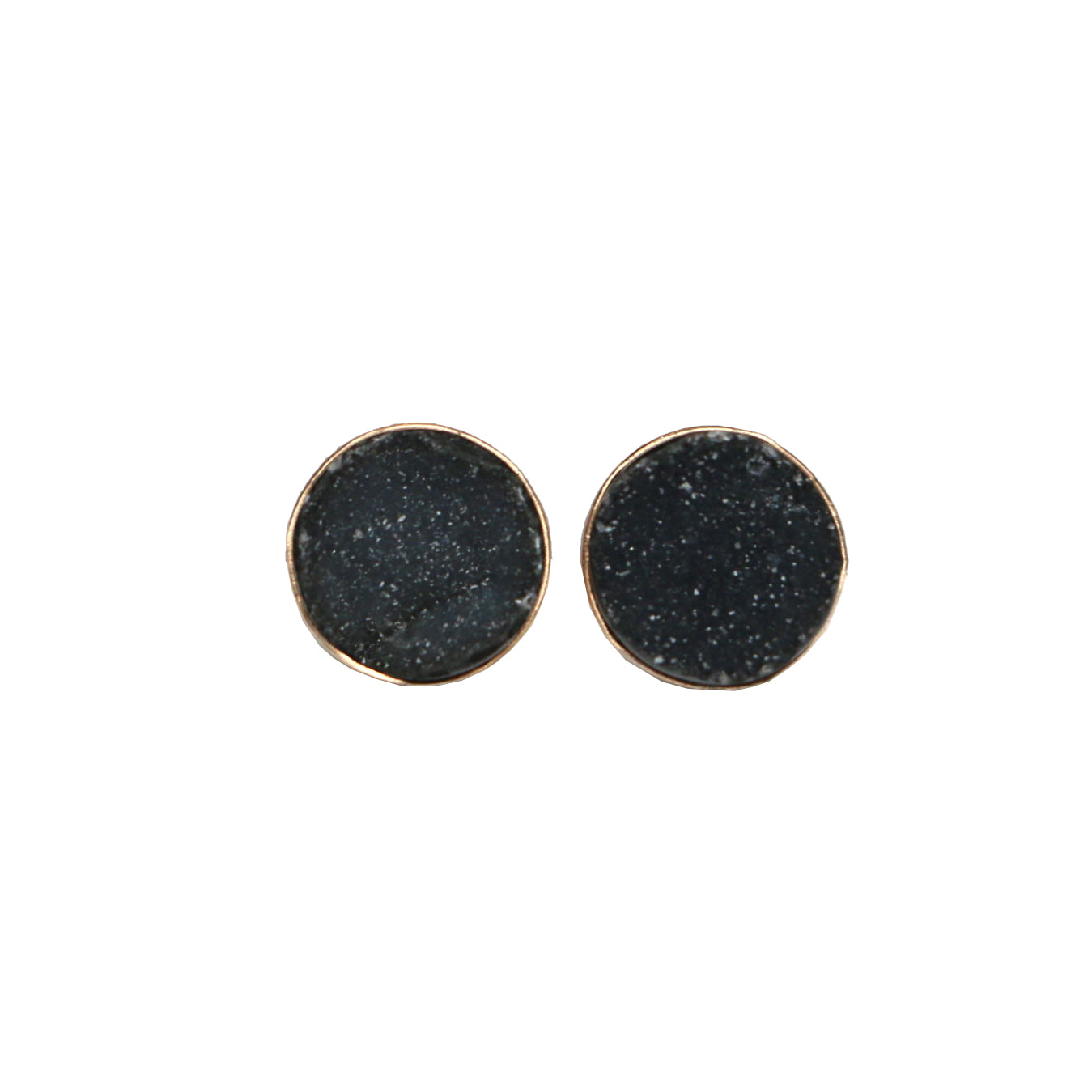 These simple studs feature natural black druzy in sterling silver or 14k gold fill. Each pair of natural stones are hand-matched, and vary slightly in texture.