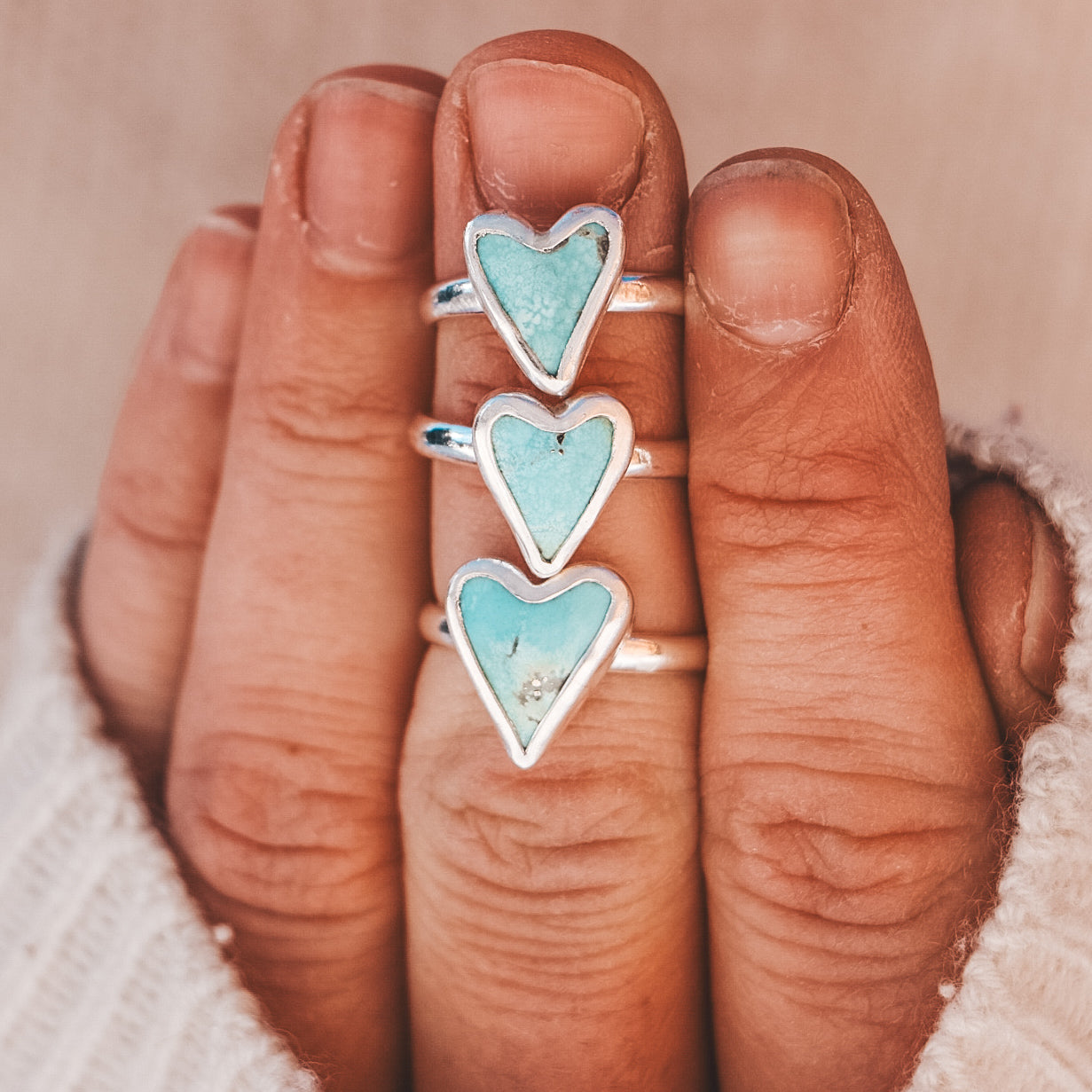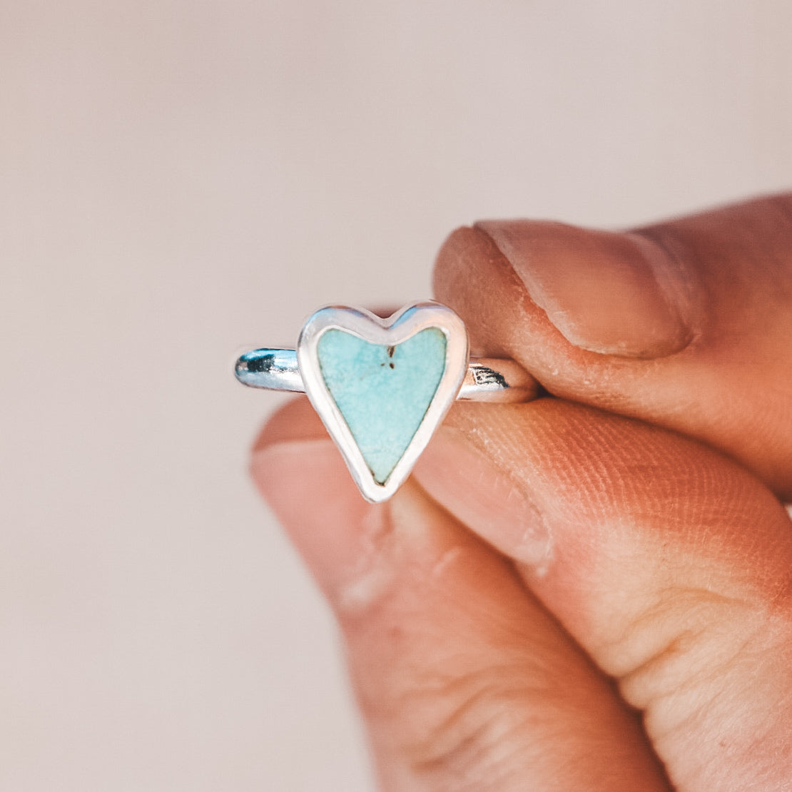 This ring features a heart-shaped Campitos Turquoise stone and is completely one of a kind!