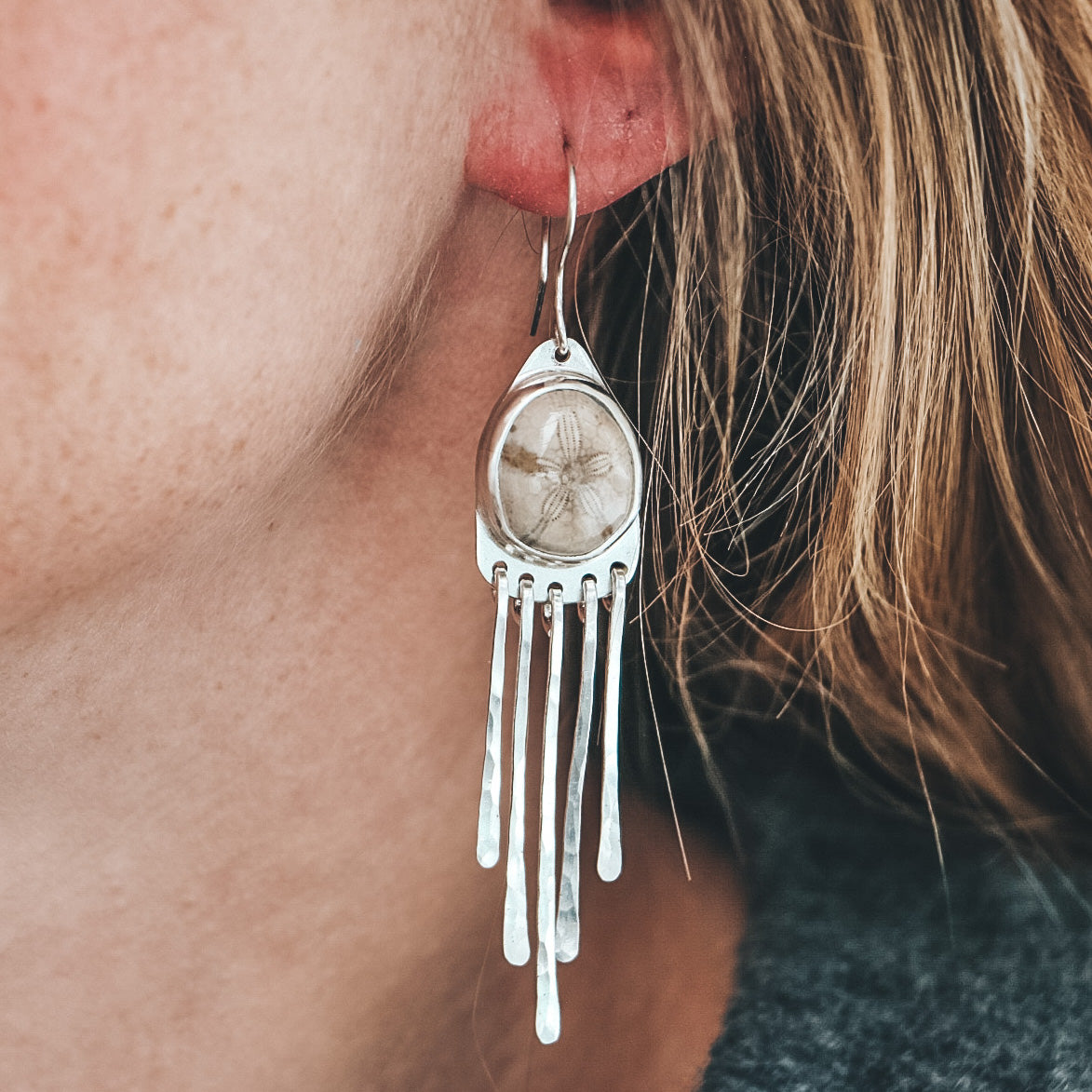 These gorgeous Fossilized Sand Dollar fringe earrings have incredible movement and are completely one of a kind!