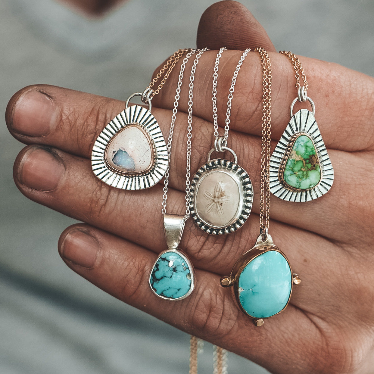 This necklace will be completed at the length of your choice on a delicate sterling silver chain. Chain options from 15" - 20" are listed in the dropdown menu; for a longer chain length, select "alternate length" and we will contact you. An upcharge will apply for chains longer than 20," in increments of $3 per additional inch.