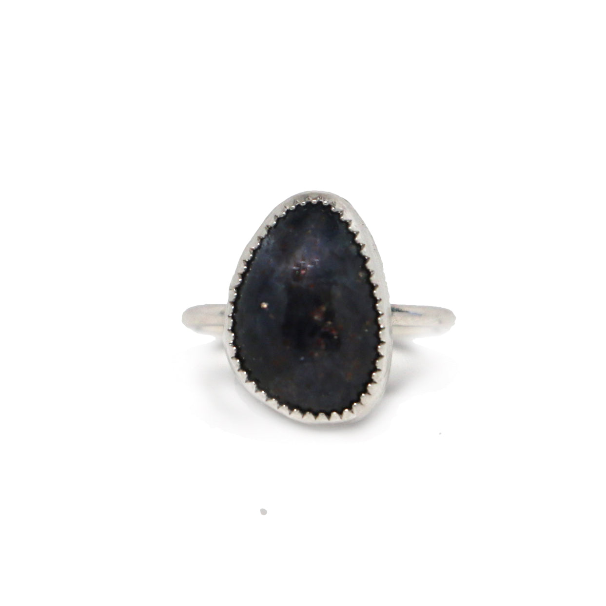 This iolite sunstone is a deep purple with glittery fuchsia and navy flecks that really show off in the sun.