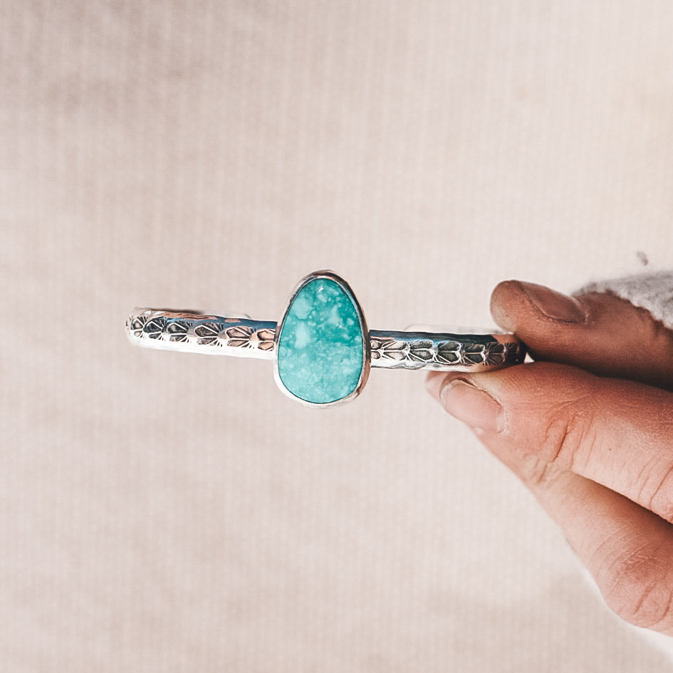 This cuff features Kingman Turquoise and is completely one of a kind!