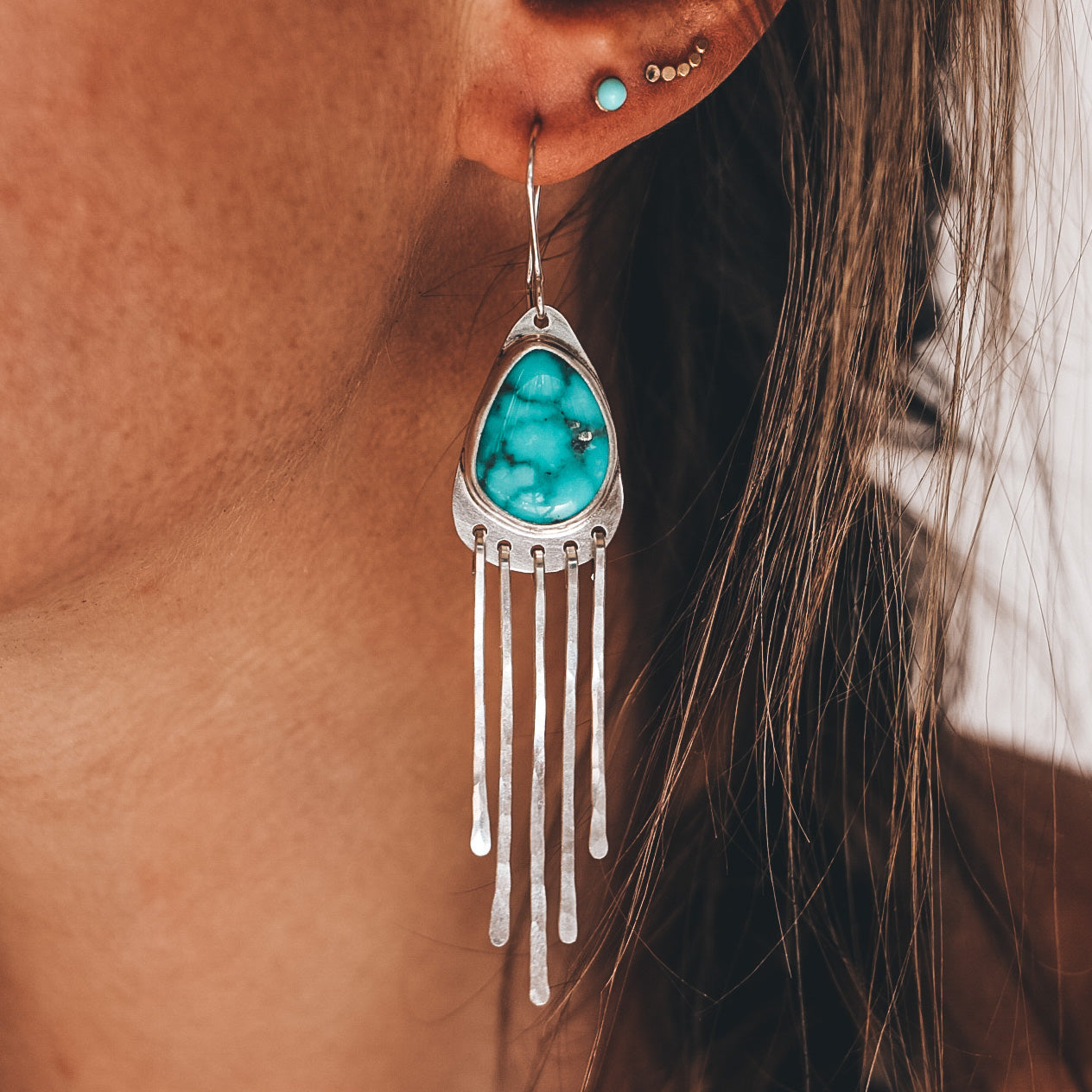 These gorgeous Kingman Turquoise fringe earrings have incredible movement and are completely one of a kind!