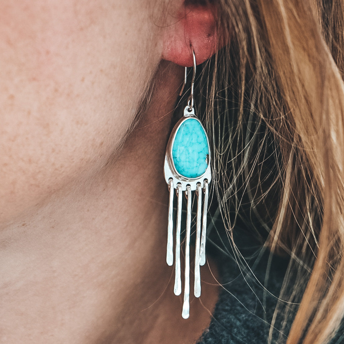 These gorgeous Kingman Turquoise fringe earrings have incredible movement and are completely one of a kind!