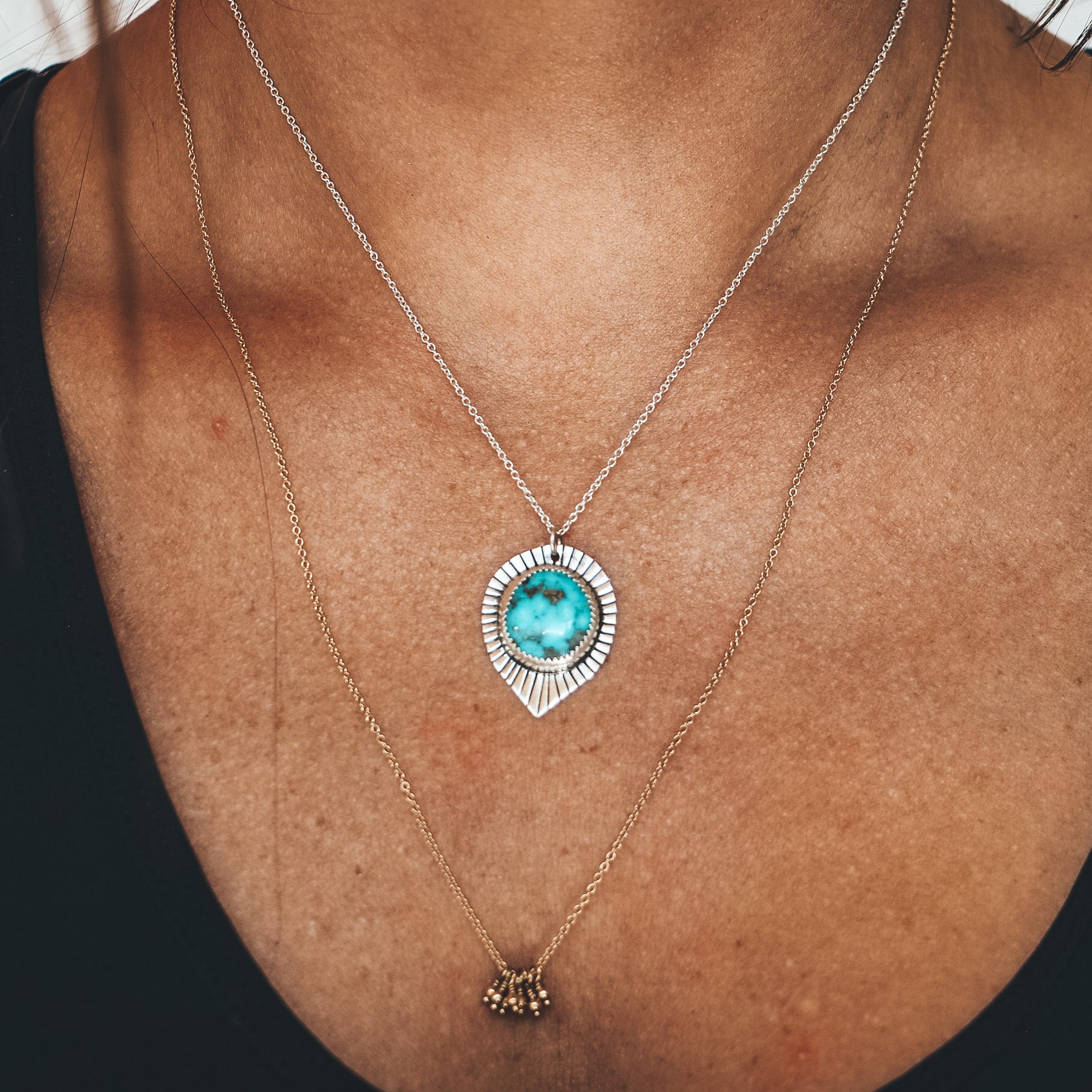 This necklace will be completed at the length of your choice on a delicate sterling silver chain. Chain options from 15" - 20" are listed in the dropdown menu; for a longer chain length, select "alternate length" and we will contact you. An upcharge will apply for longer chains at the rate of $3 per additional inch.
