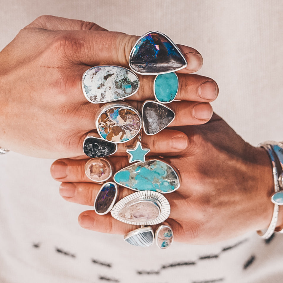 This ring is hand crafted by Kate in Aspen, Colorado using semi-precious stones and metals. This ring is completely one of a kind and you will receive the piece photographed. Ring will come in a gift box with a travel pouch, polish cloth, and care instructions.
