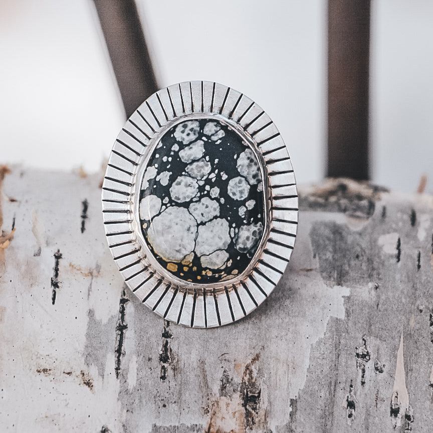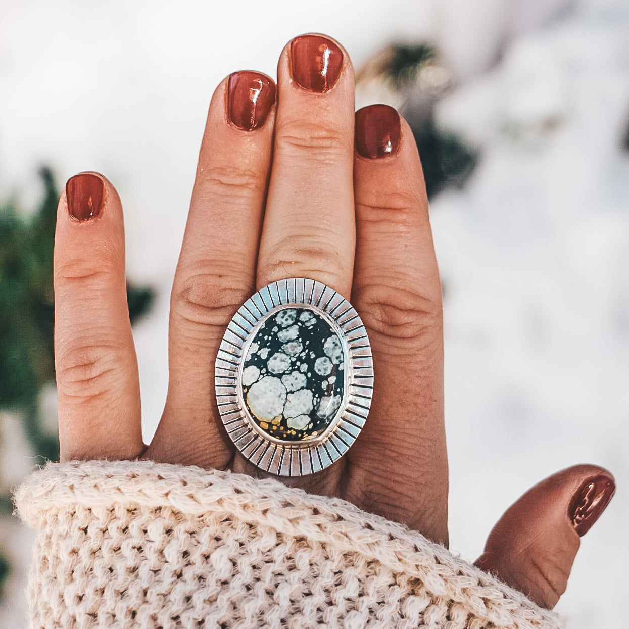 This ring is hand crafted by Kate in Aspen, Colorado using semi-precious stones and metals. This ring is completely one of a kind and you will receive the piece photographed. Ring will come in a gift box with a travel pouch, polish cloth, and care instructions.