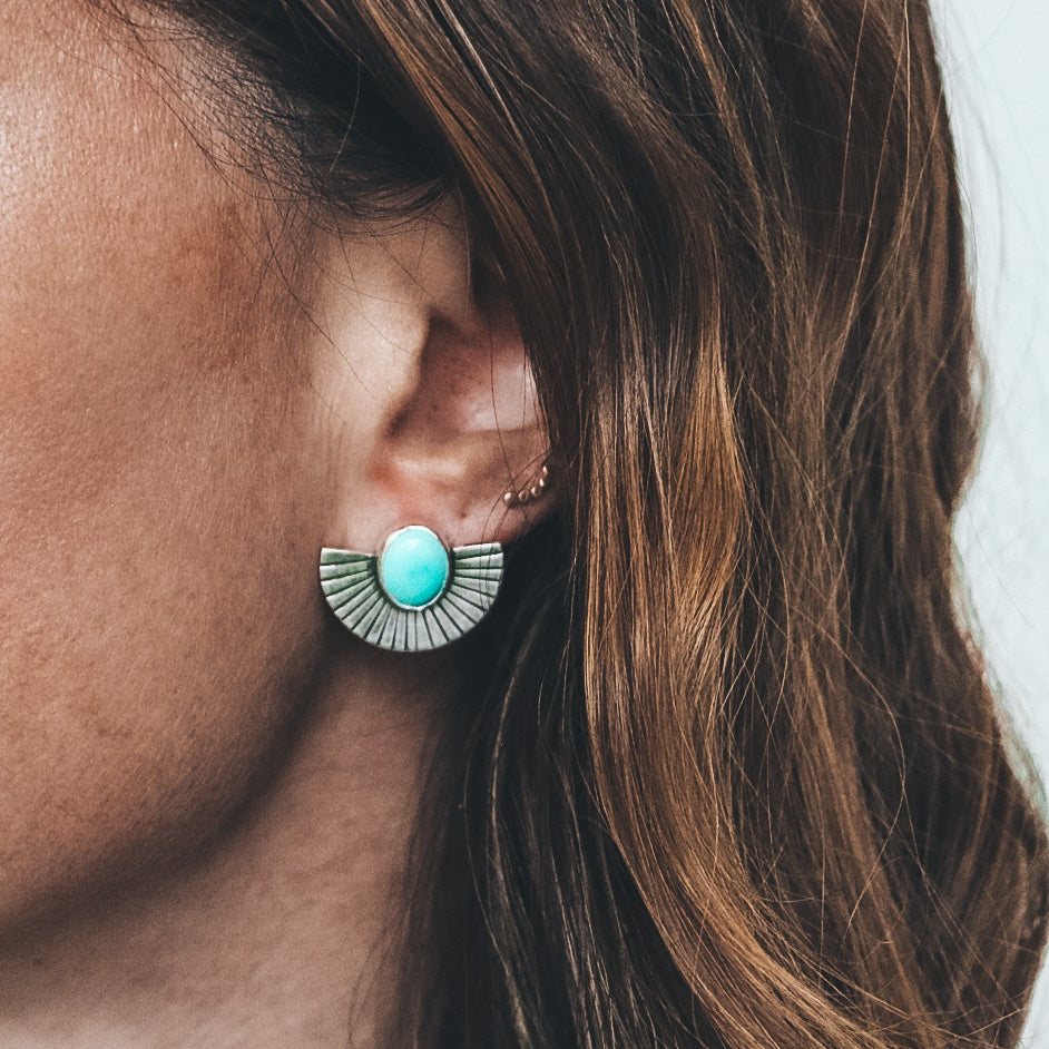 The Fan Studs have become a signature design and customer fave of Mineral + Mine! Each pair of Fan Studs features a precise fan pattern and unique one-of-a-kind stones.