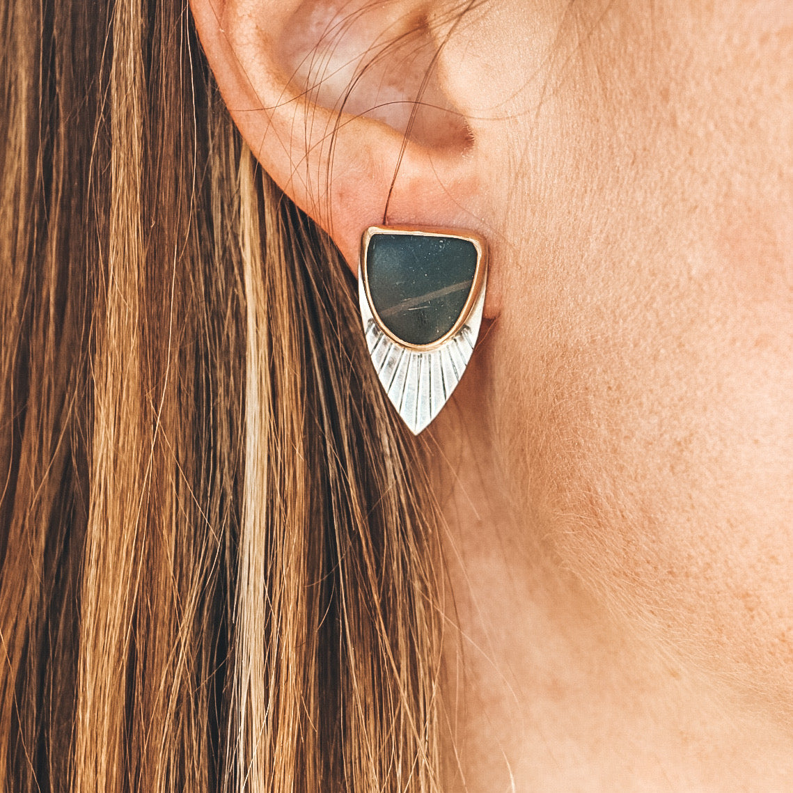Matte Obsidian Fan Studs #2 - Mixed Metals