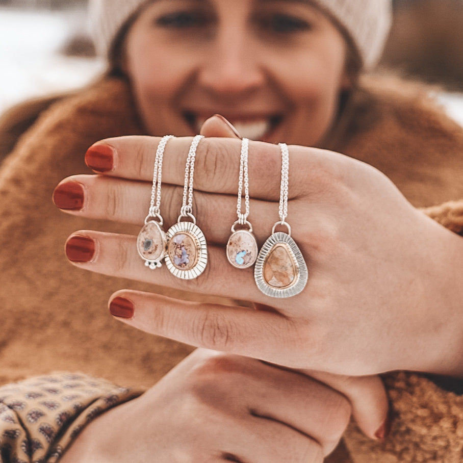 This necklace will be completed at the length of your choice on a delicate sterling silver chain. Our standard chain lengths are 16" 17" or 18"