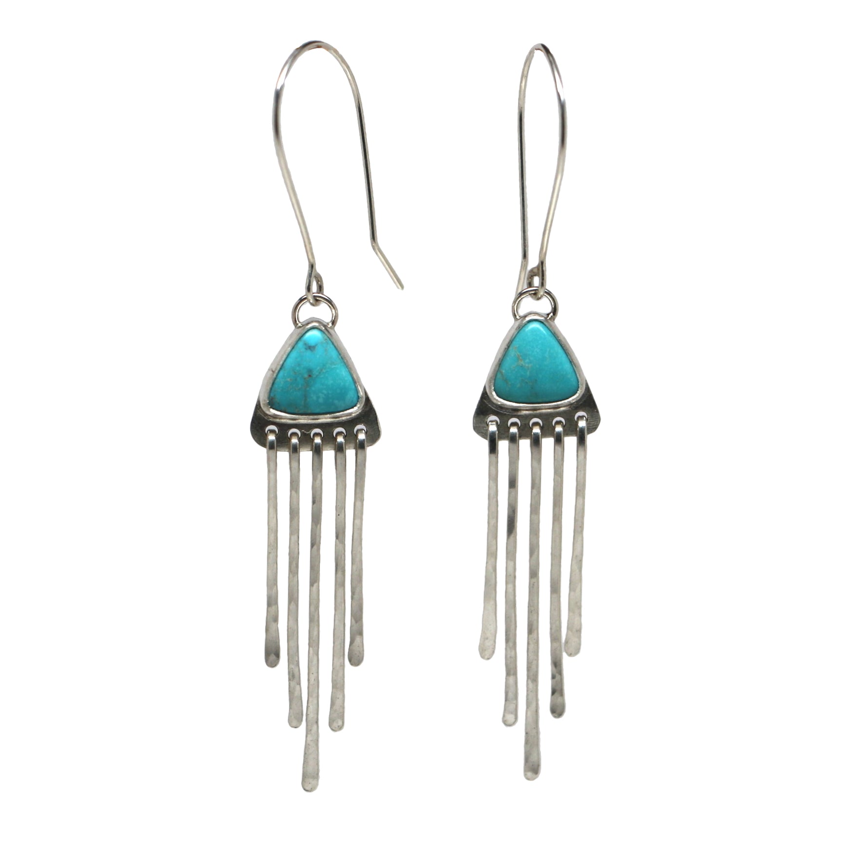 Earrings measure 3.25" in length and are set in sterling silver and fine silver.