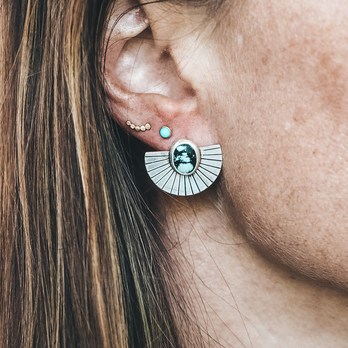 The Fan Studs have become a signature design and customer fave of Mineral + Mine! Each pair of Fan Studs features a precise straight-line fan pattern and unique one-of-a-kind stones.