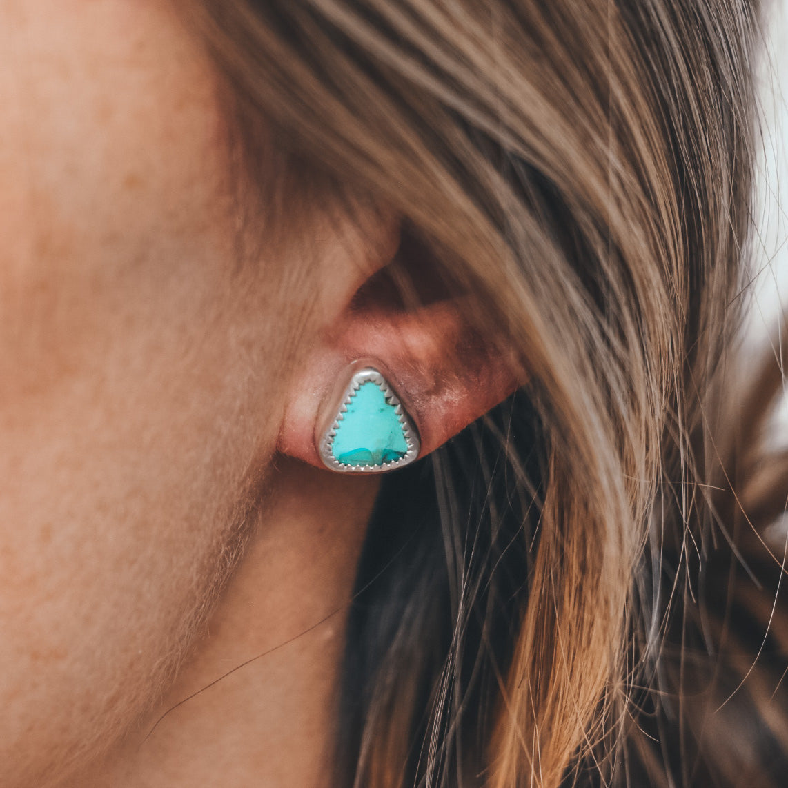 These 'sister' stones are paired for similarity and for their complementary natural look. Each Sonoran Gold Turquoise stone is hand-chosen and paired with a mate; each stone is completely one of a kind.