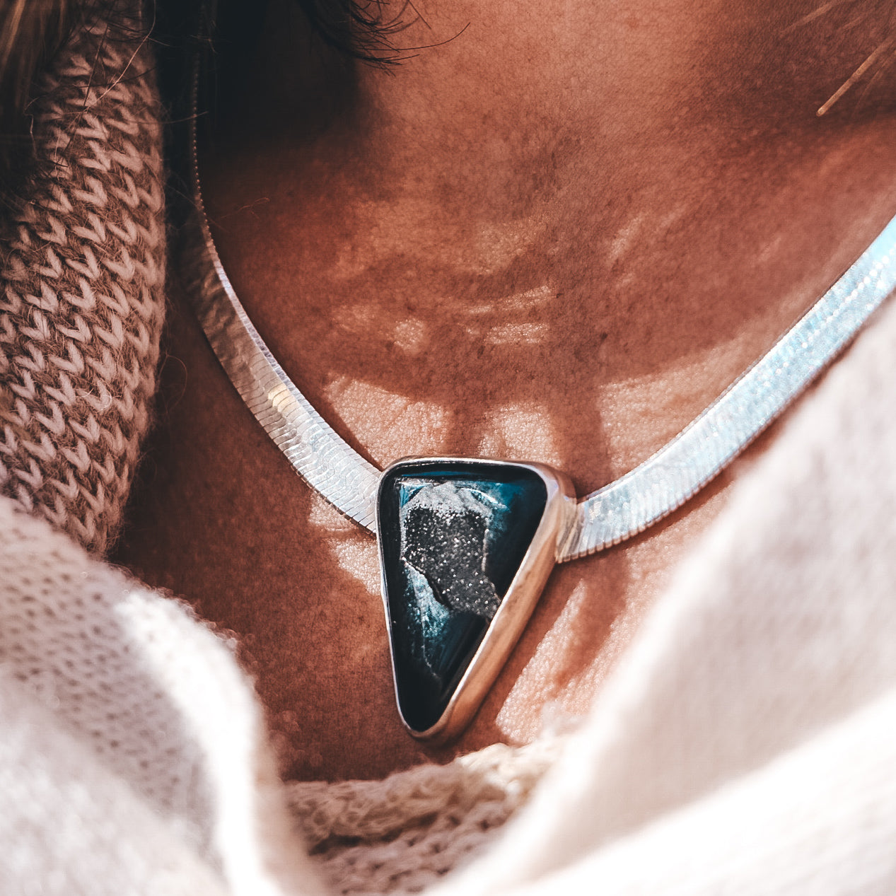 This necklace is hand crafted by Kate in Aspen, Colorado using semi-precious stones and metals. This necklace is completely one of a kind and you will receive the piece photographed. Necklace will come in a gift box with a travel pouch, polish cloth, and care instructions.