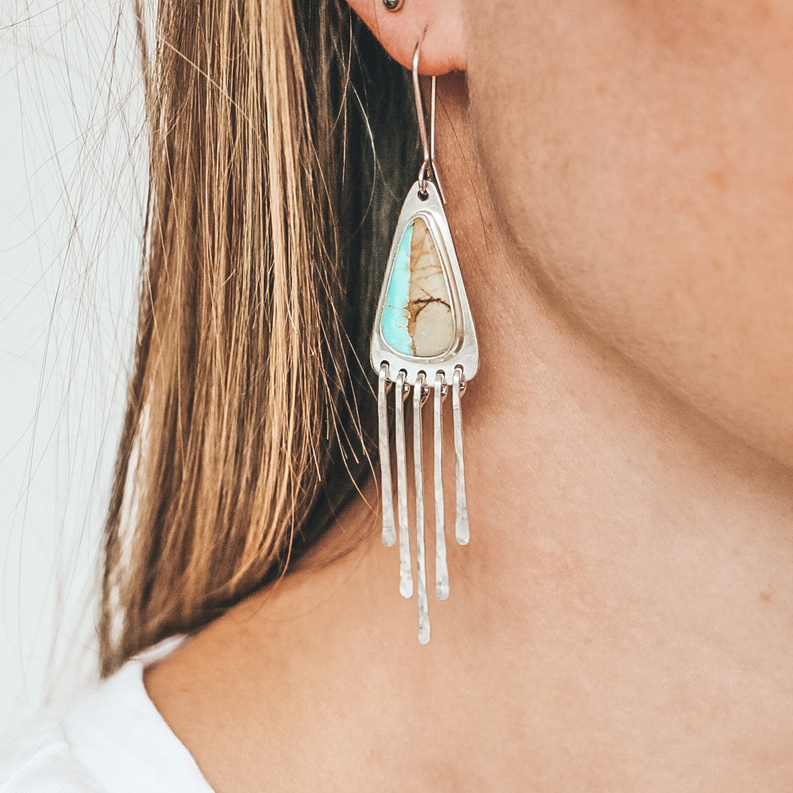 These gorgeous Royston Ribbon Turquoise fringe earrings have incredible movement and are completely one of a kind!
