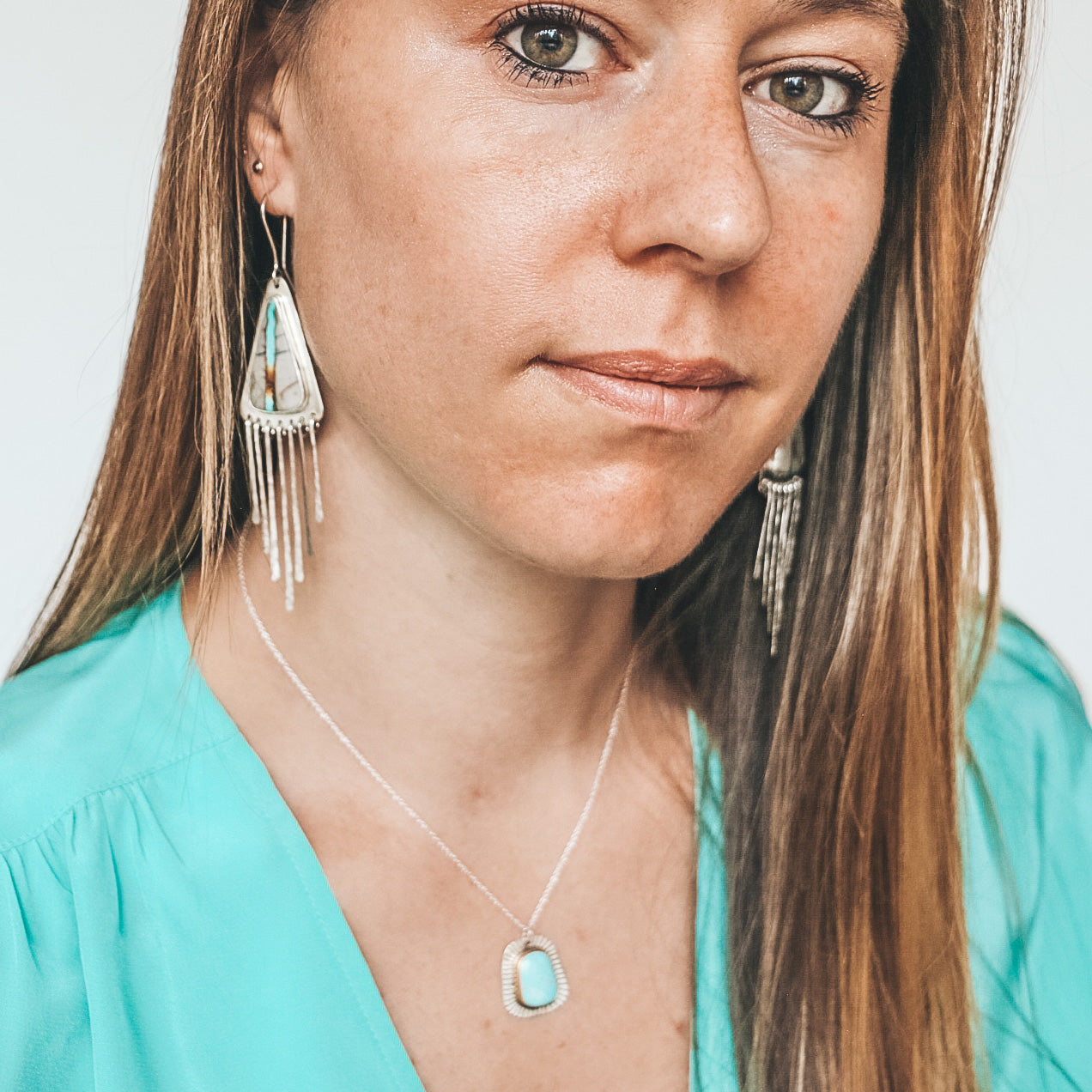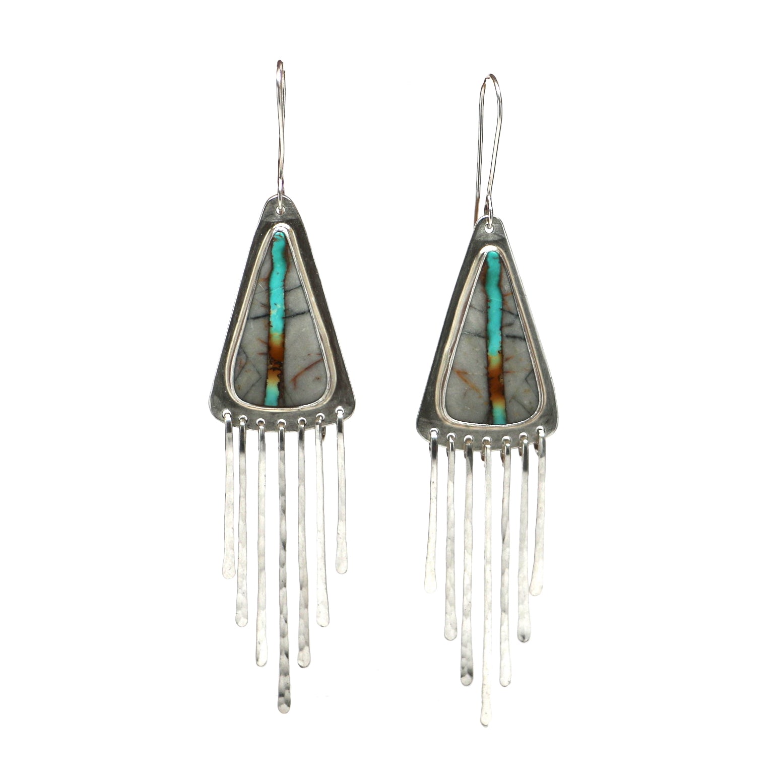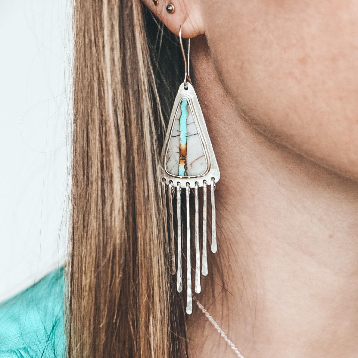 These gorgeous Royston Ribbon Turquoise fringe earrings have incredible movement and are completely one of a kind!