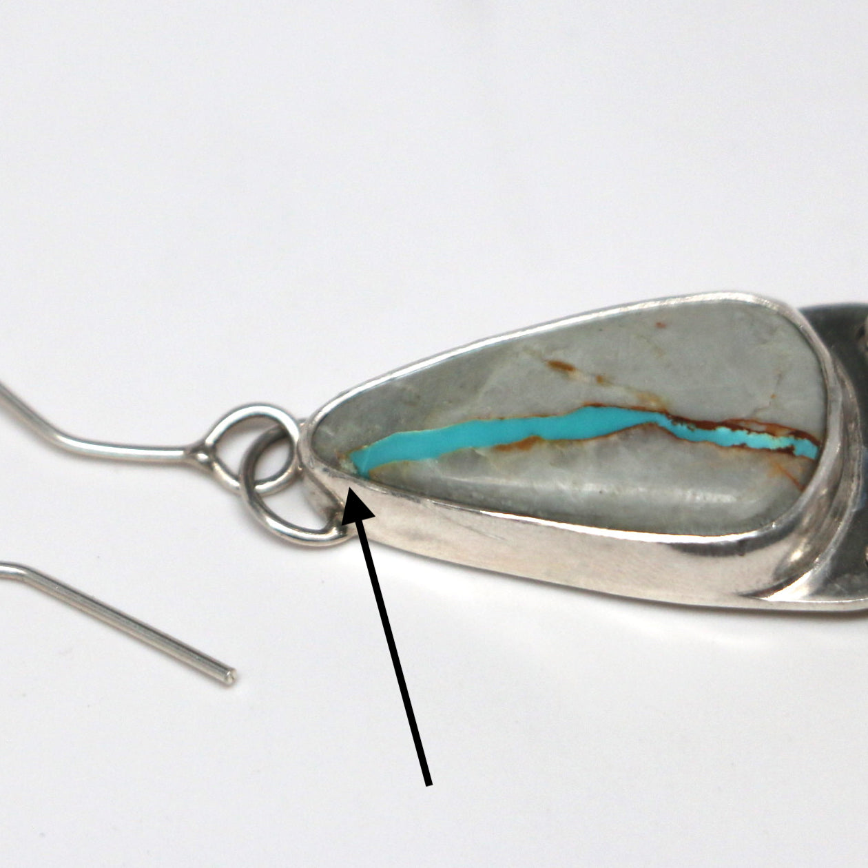The natural Royston Ribbon stones are shades of grey, with a bright, natural, turquoise ribbon down the middle.