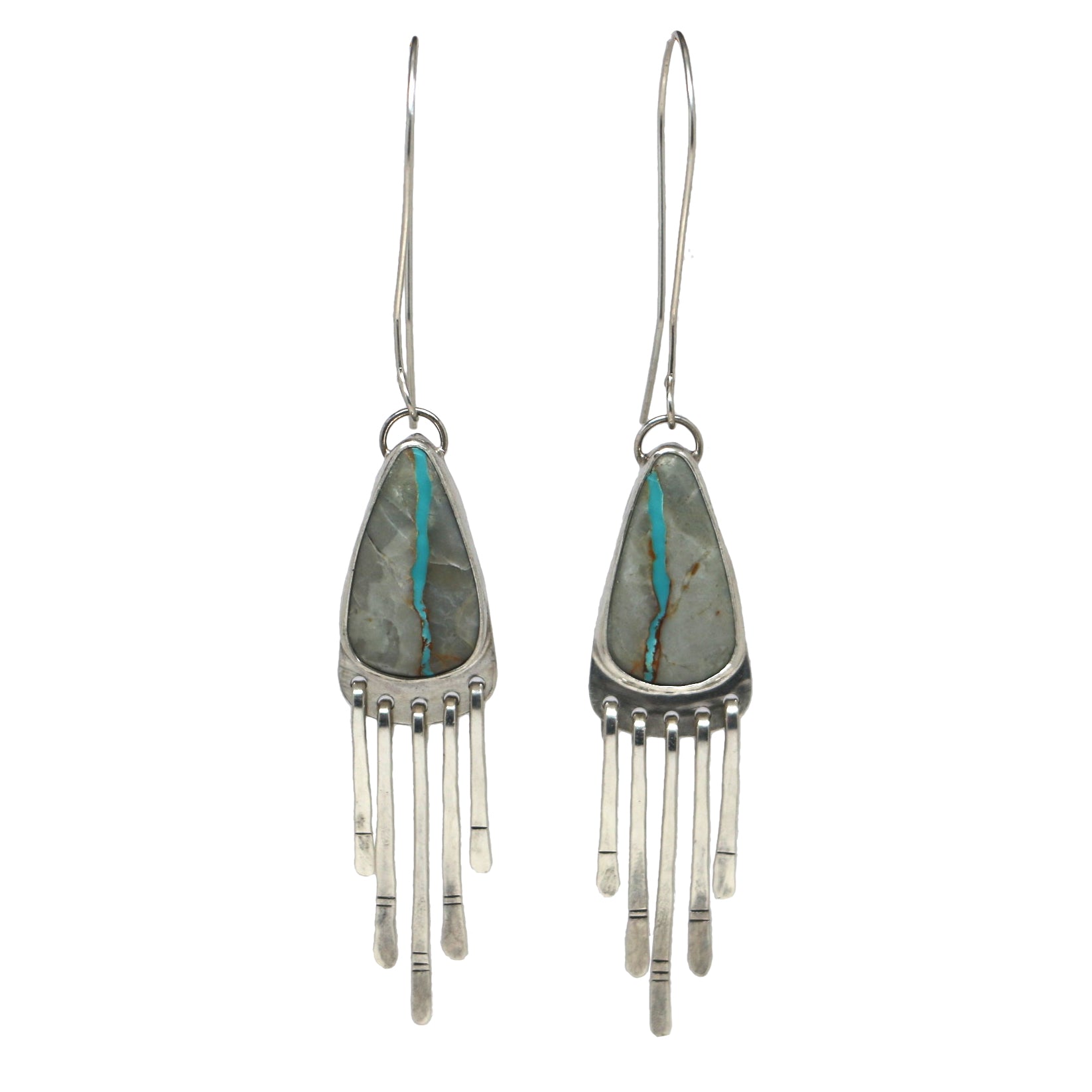 Earrings measure 4" in length and are set in sterling silver and fine silver.