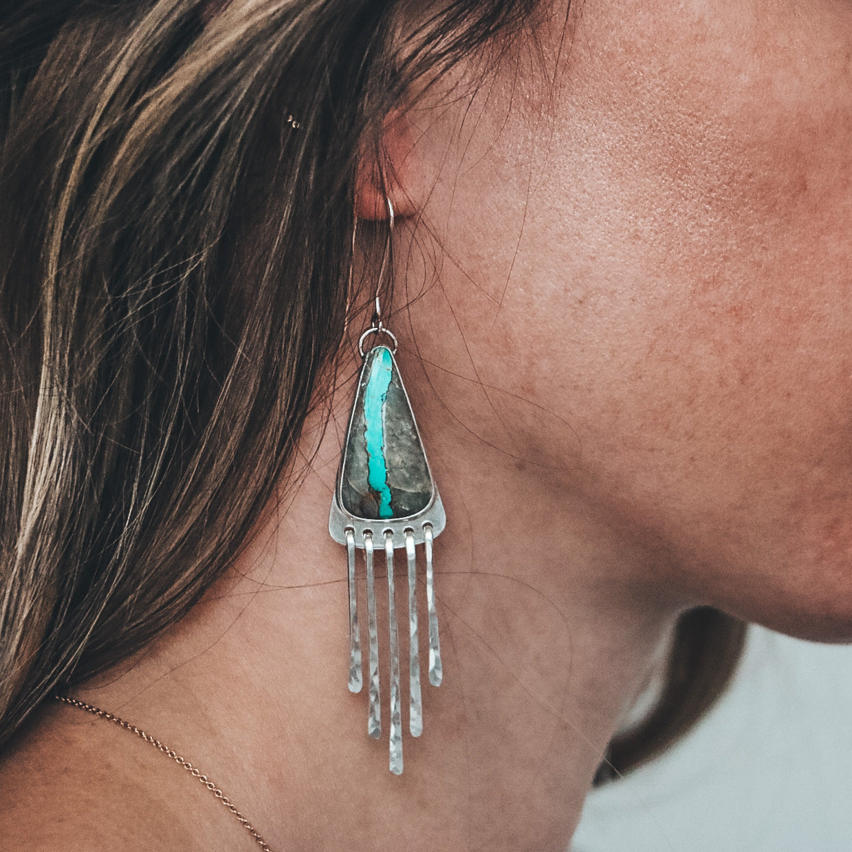 These gorgeous Royston Ribbon Turquoise fringe earrings have incredible movement and are completely one of a kind!