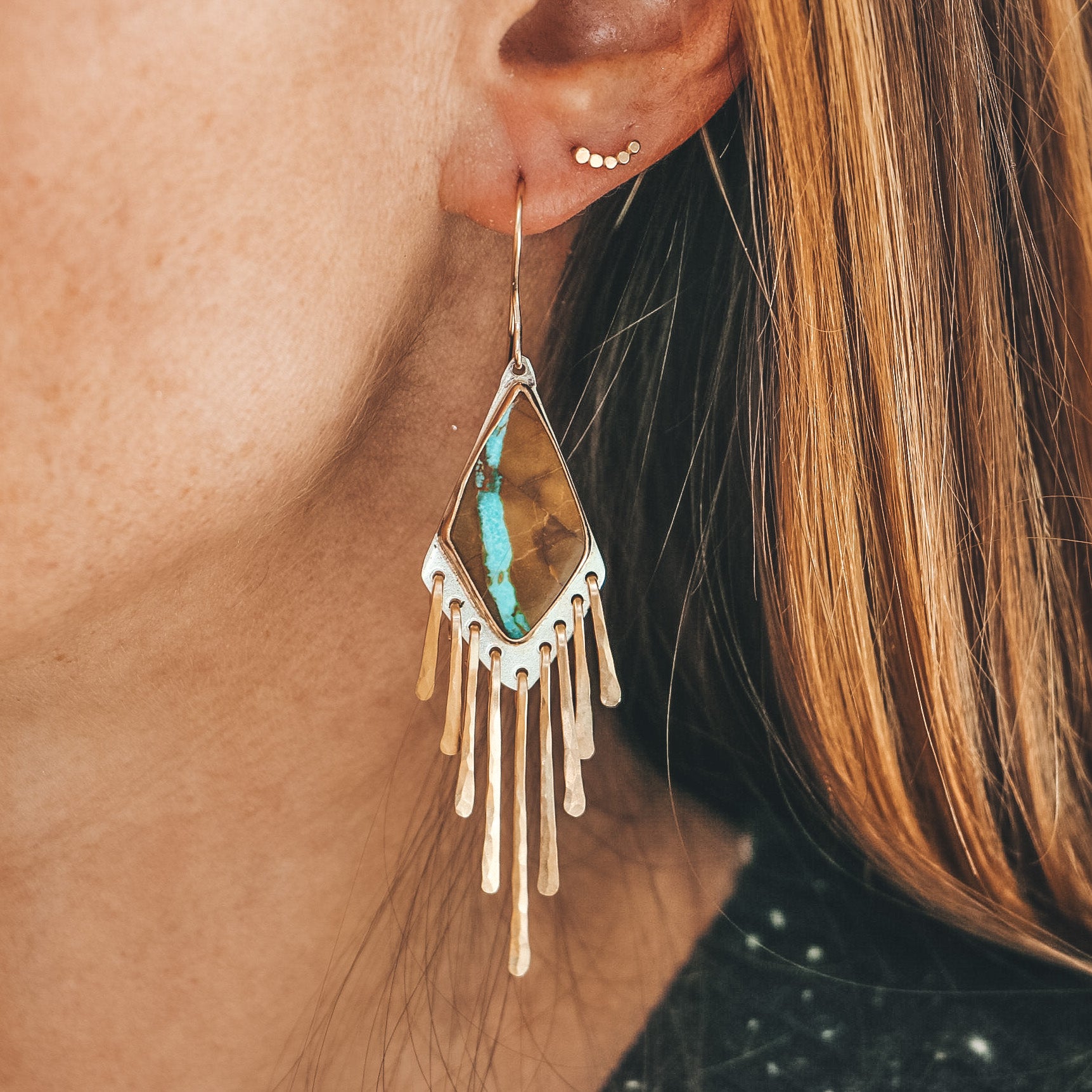 These gorgeous Royston Ribbon Turquoise fringe earrings have incredible movement and are completely one of a kind!