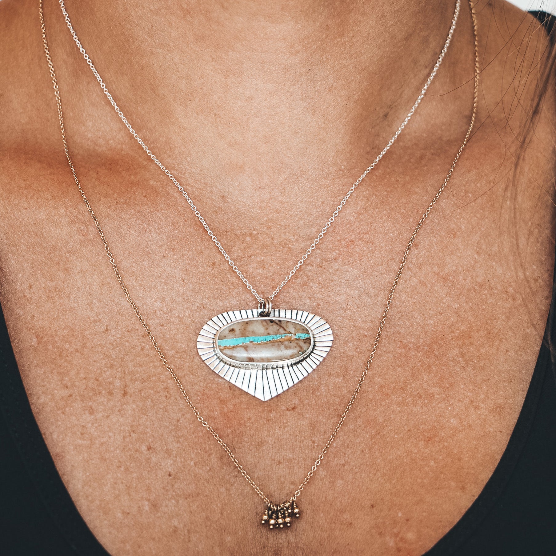 This necklace will be completed at the length of your choice on a delicate sterling silver chain. Chain options from 15" - 20" are listed in the dropdown menu; for a longer chain length, select "alternate length" and we will contact you. An upcharge will apply for longer chains in increments of $3 per additional inch.