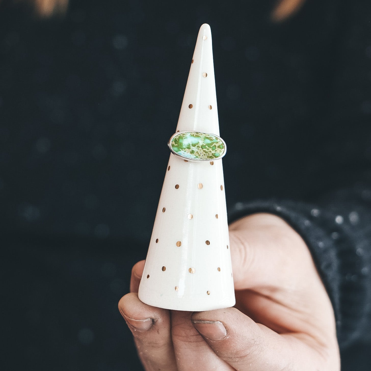 This ring can be sized up one half size by adding hammered texture to the band, upon request. If you'd like it sized up, go ahead and complete checkout with this item, and put your request in the 'NOTES' option in the cart, or send us a message in response to your order confirmation email.
