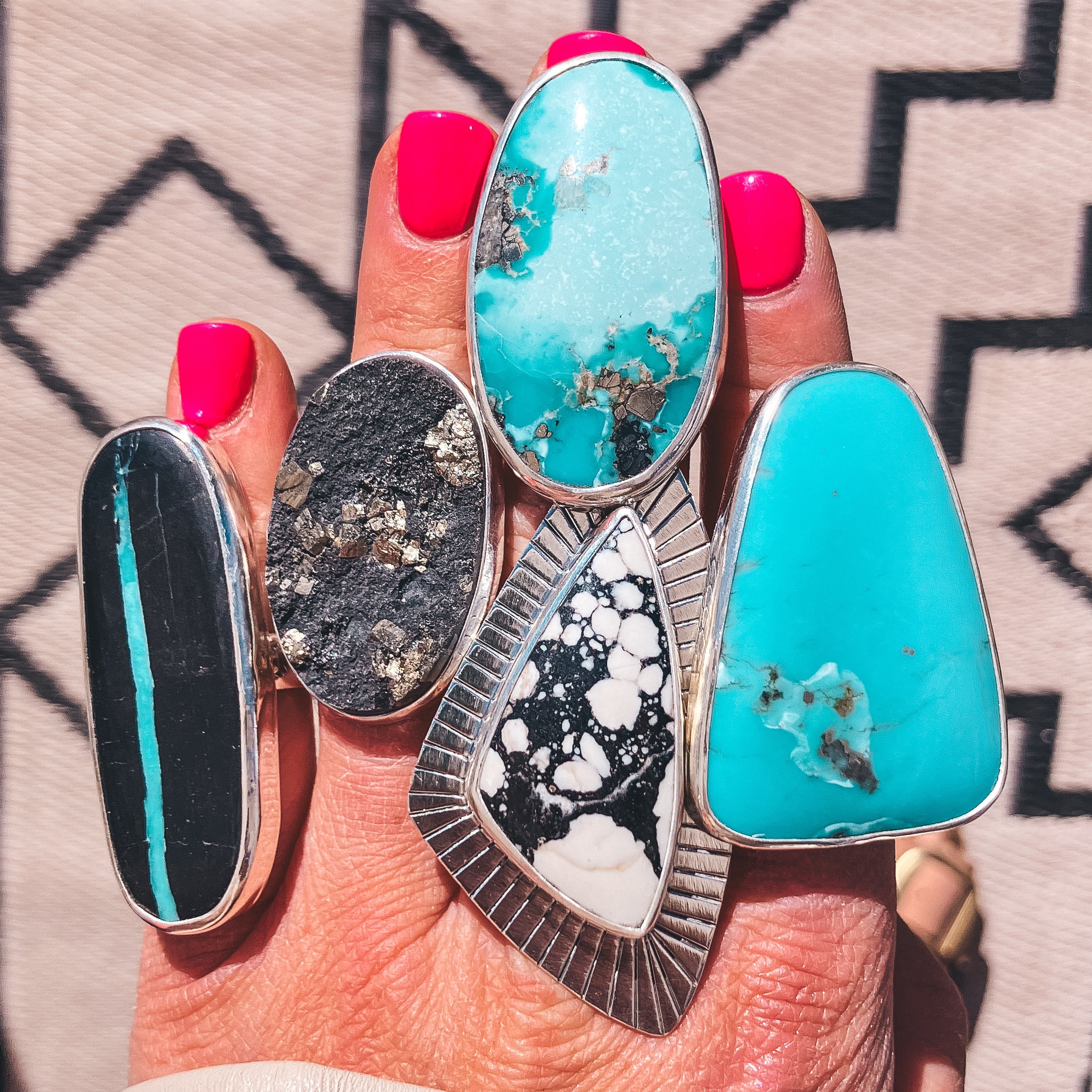 This ring is hand crafted by Kate in the mountains of Colorado using semi-precious stones and metals. This ring is completely one of a kind and you will receive the piece photographed. Ring will come in a gift box with a travel pouch, polish cloth, and care instructions.