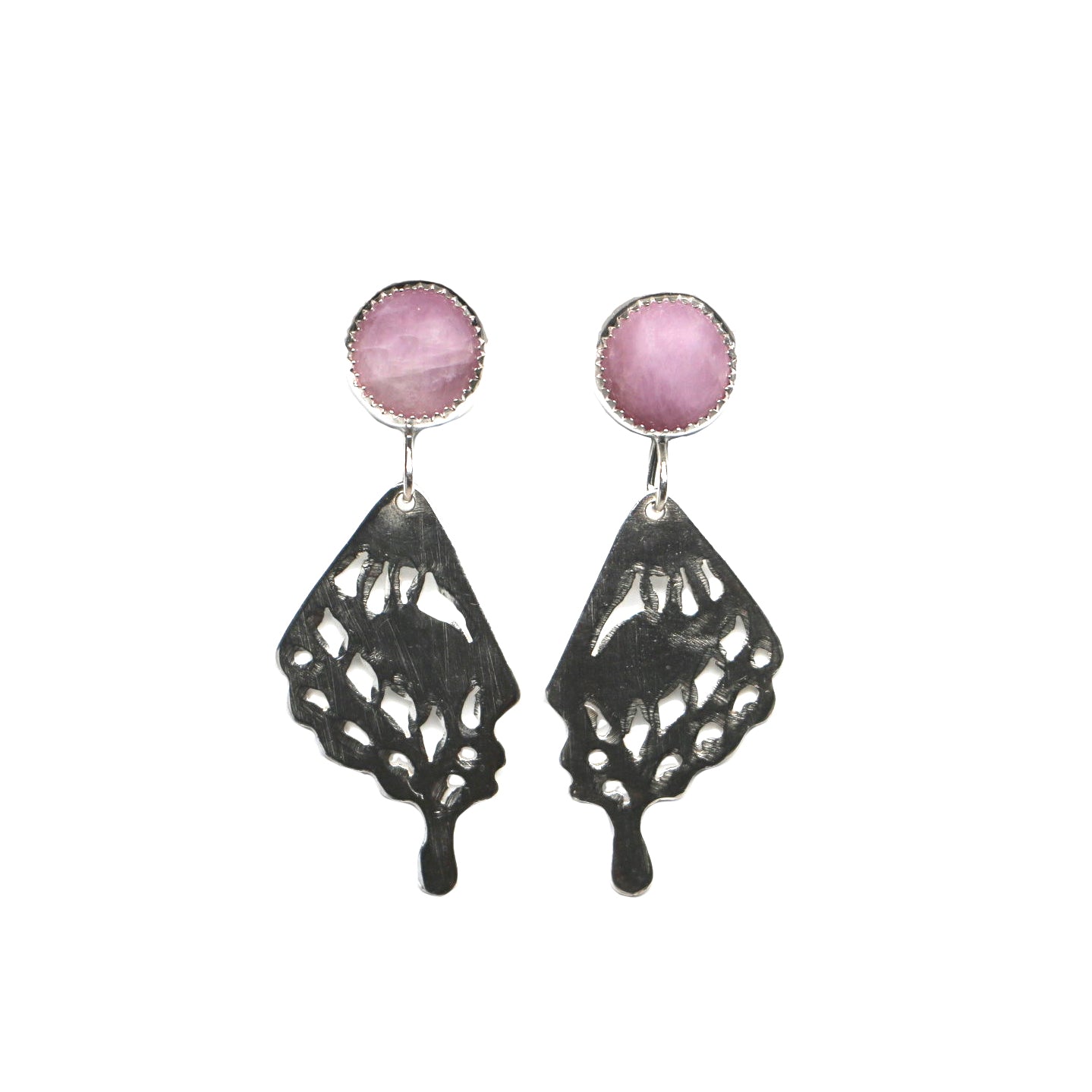 This pair of Swallowtail Studs features kunzite, which is milky pink in color.