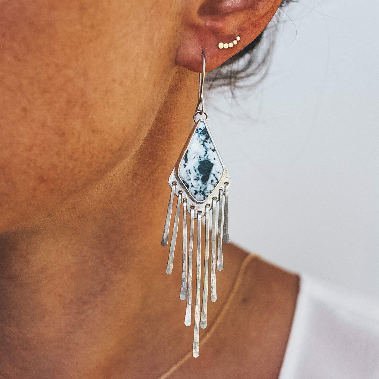 These gorgeous White Buffalo Turquoise fringe earrings have incredible movement and are completely one of a kind!