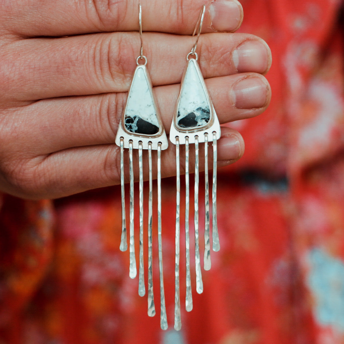 These White Buffalo Turquoise fringe earrings have incredible movement and are completely one of a kind!